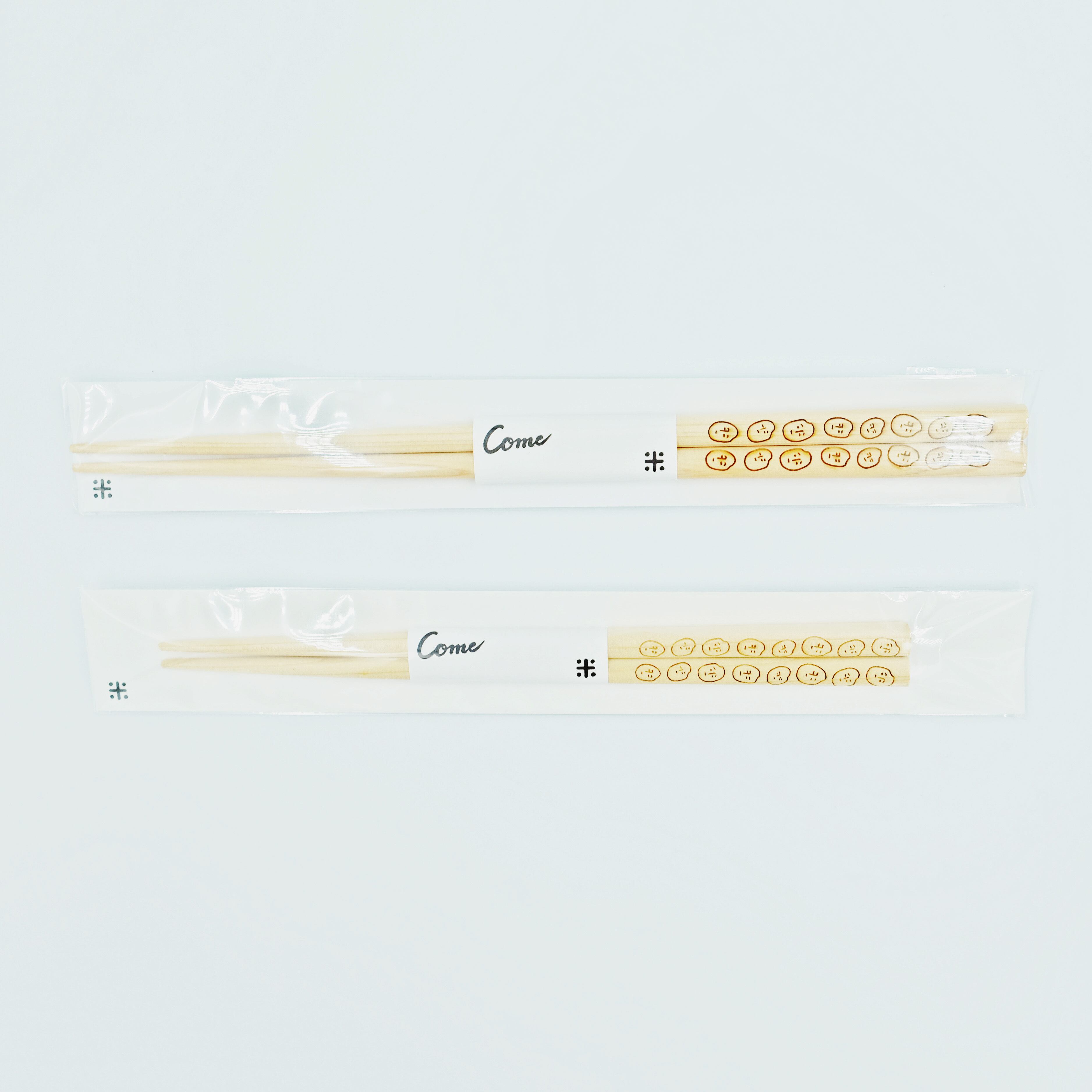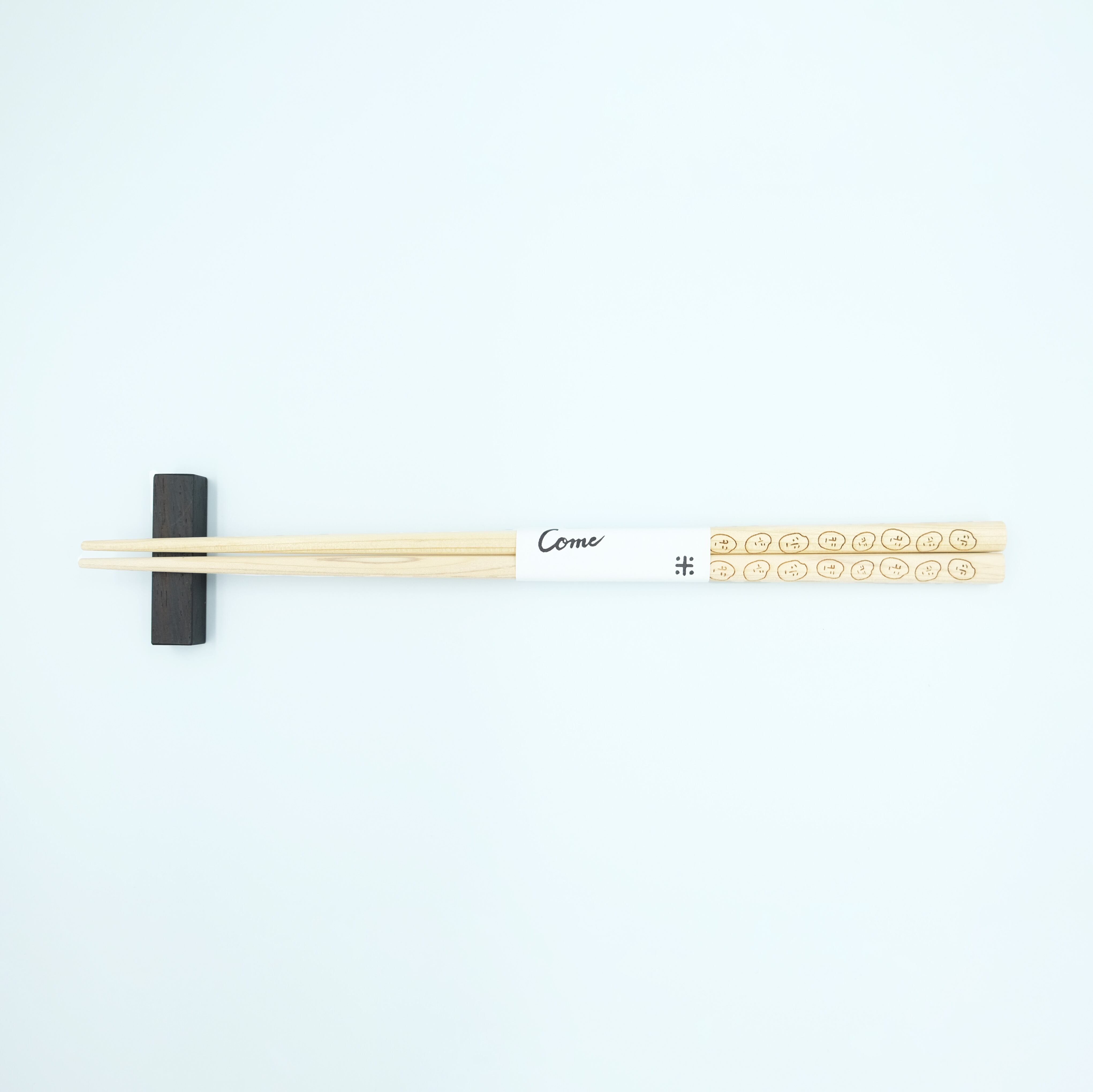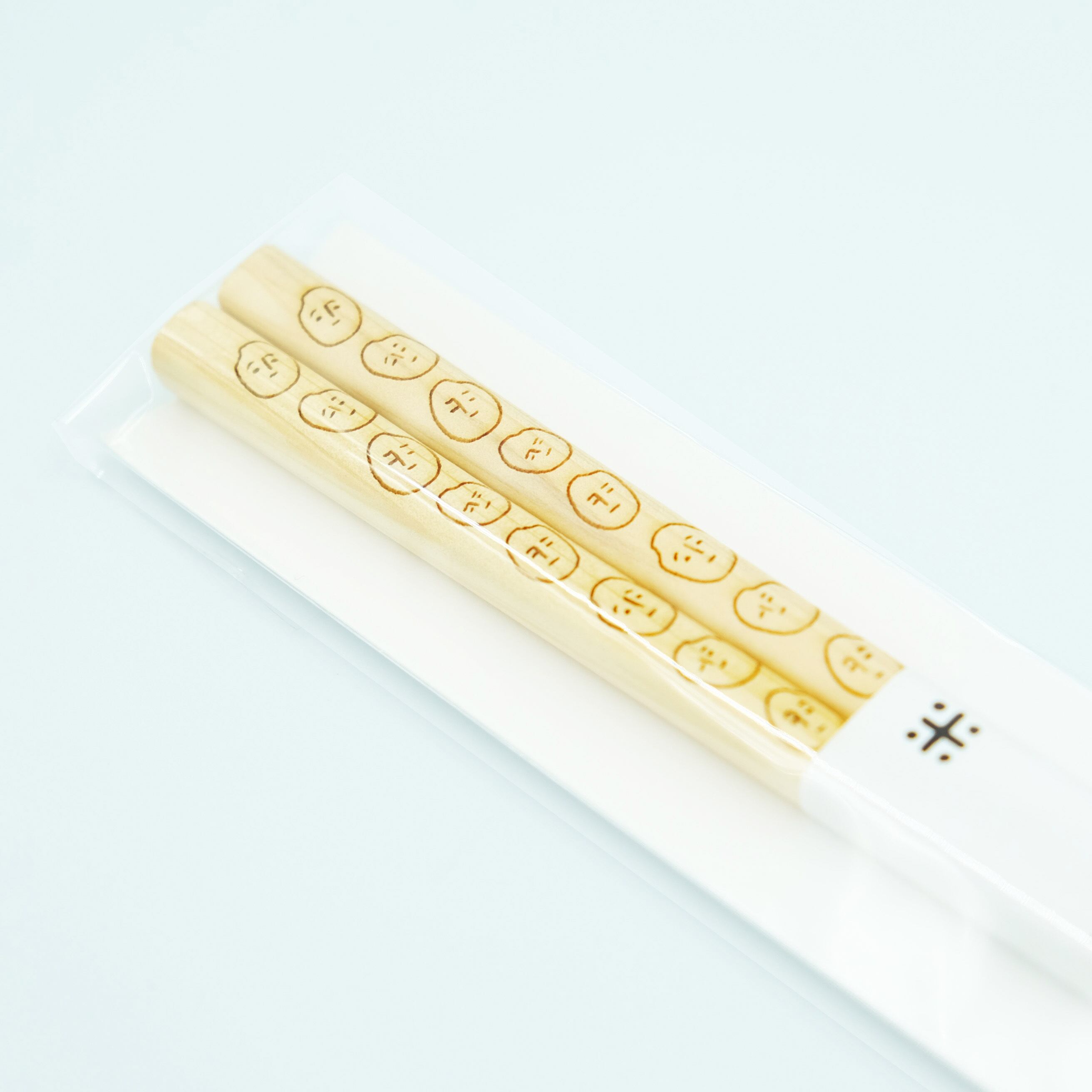 可愛らしいお米たちが彫刻された能登ヒバ製のお箸です。